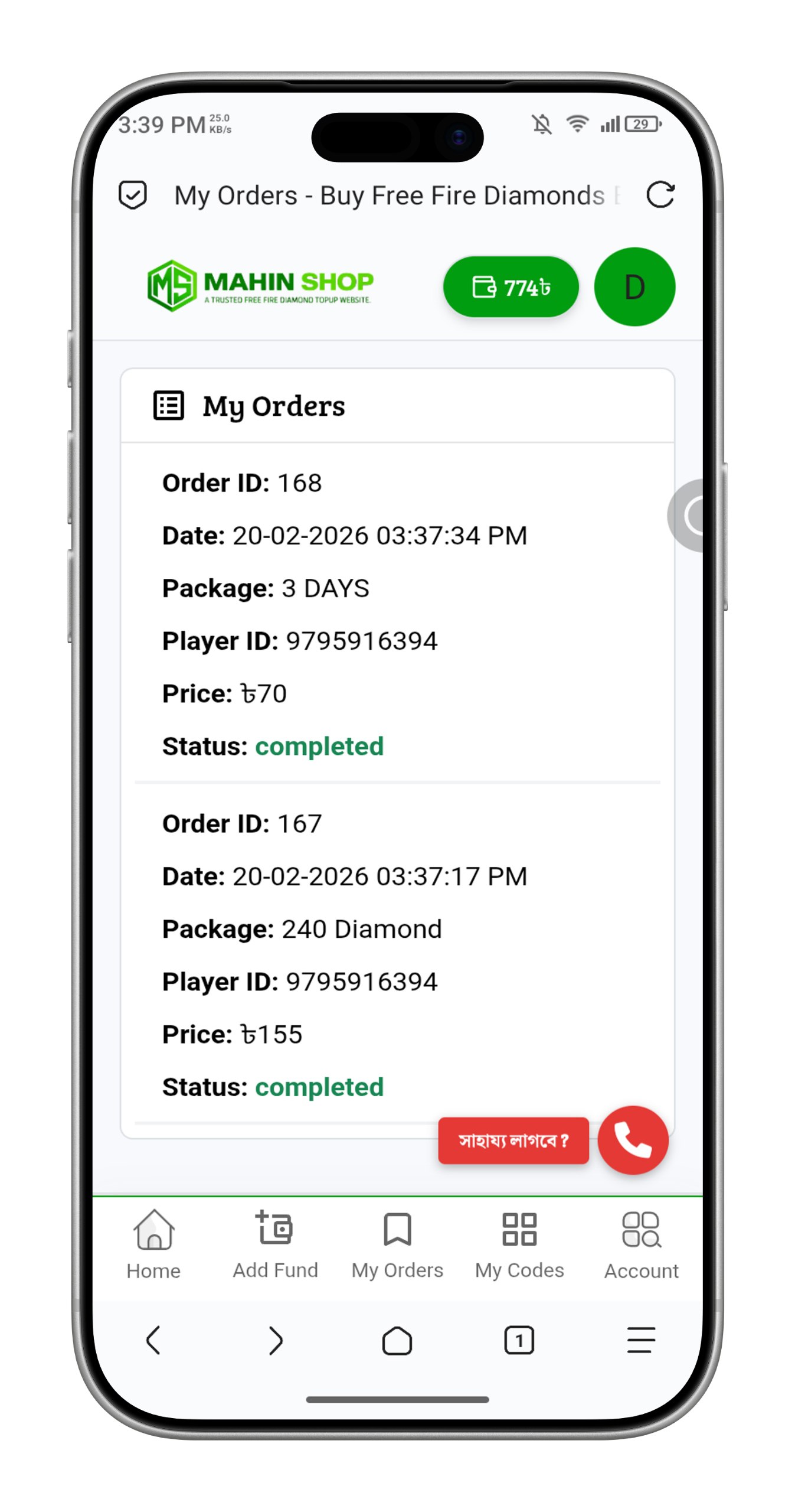 🔥 অর্ডার নোটিফিকেশন 🔔
