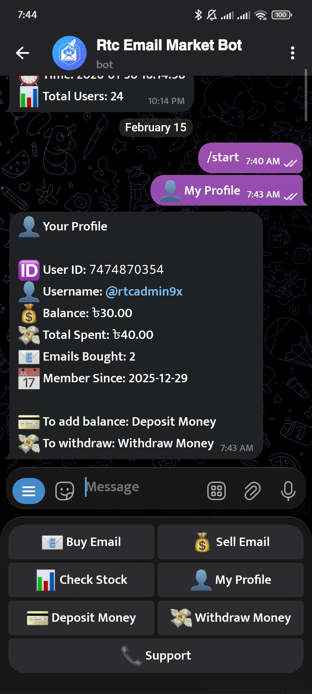 👤 Check profile & balance