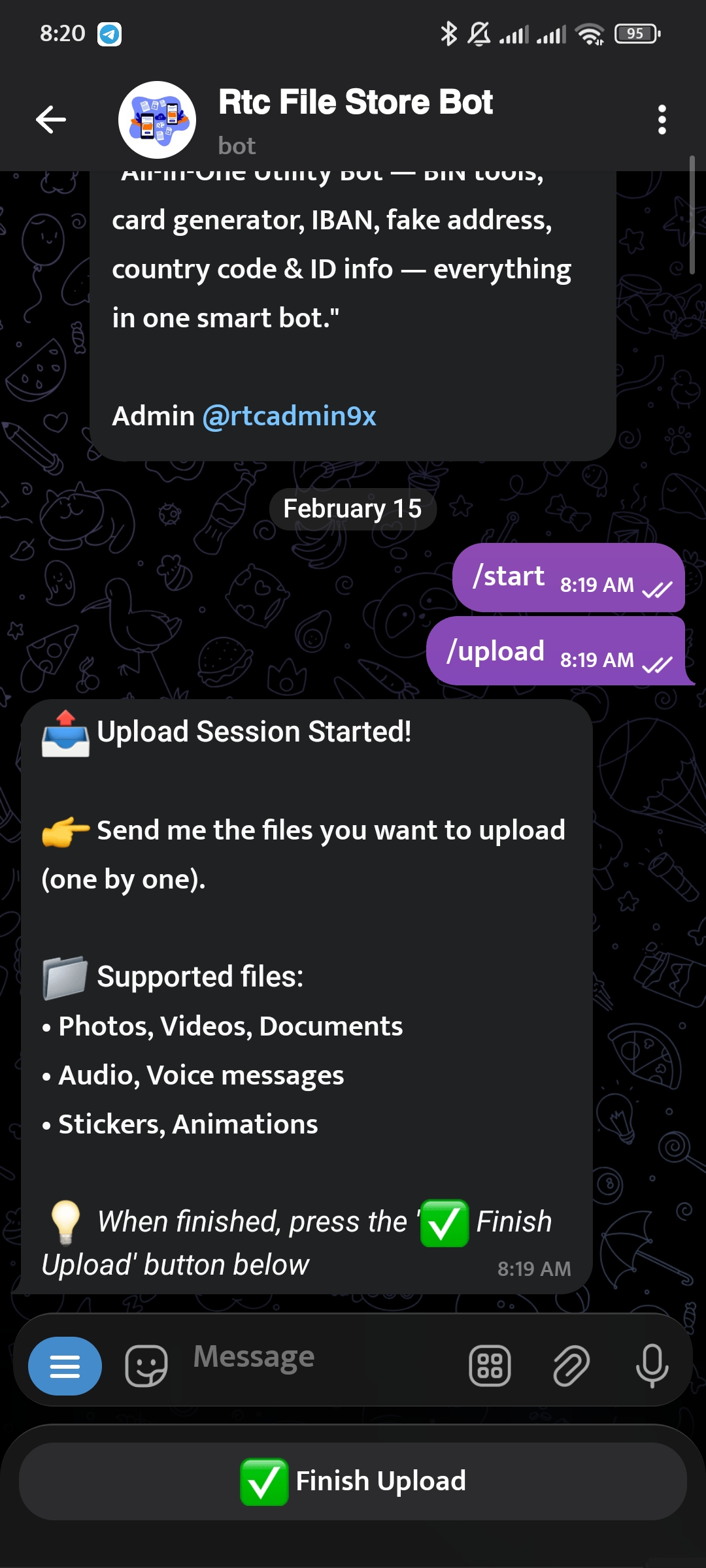 3. When finished, type ✅ to confirm upload.
