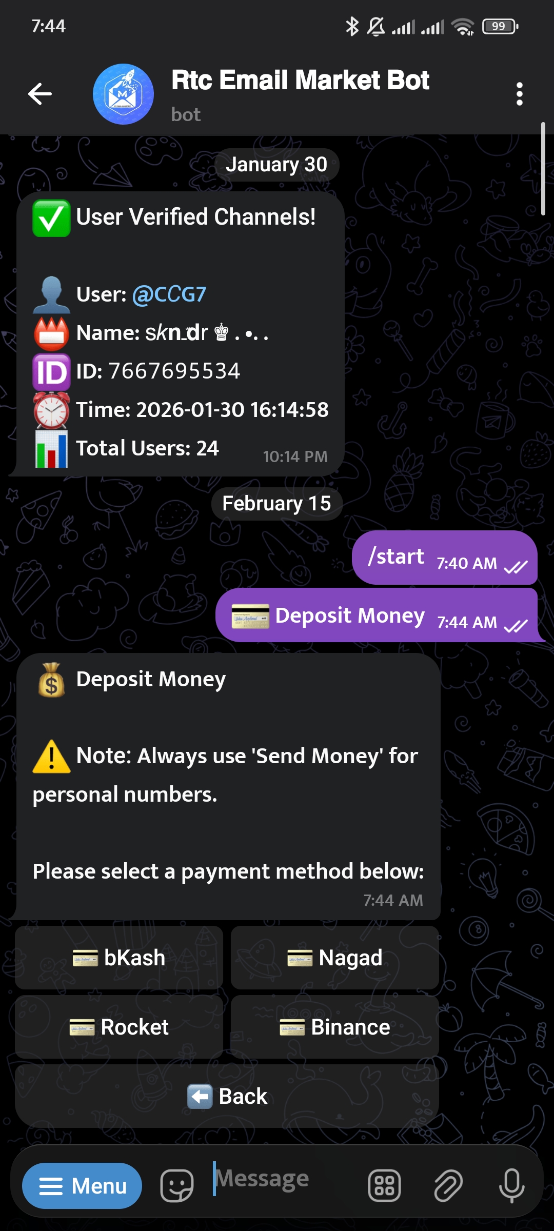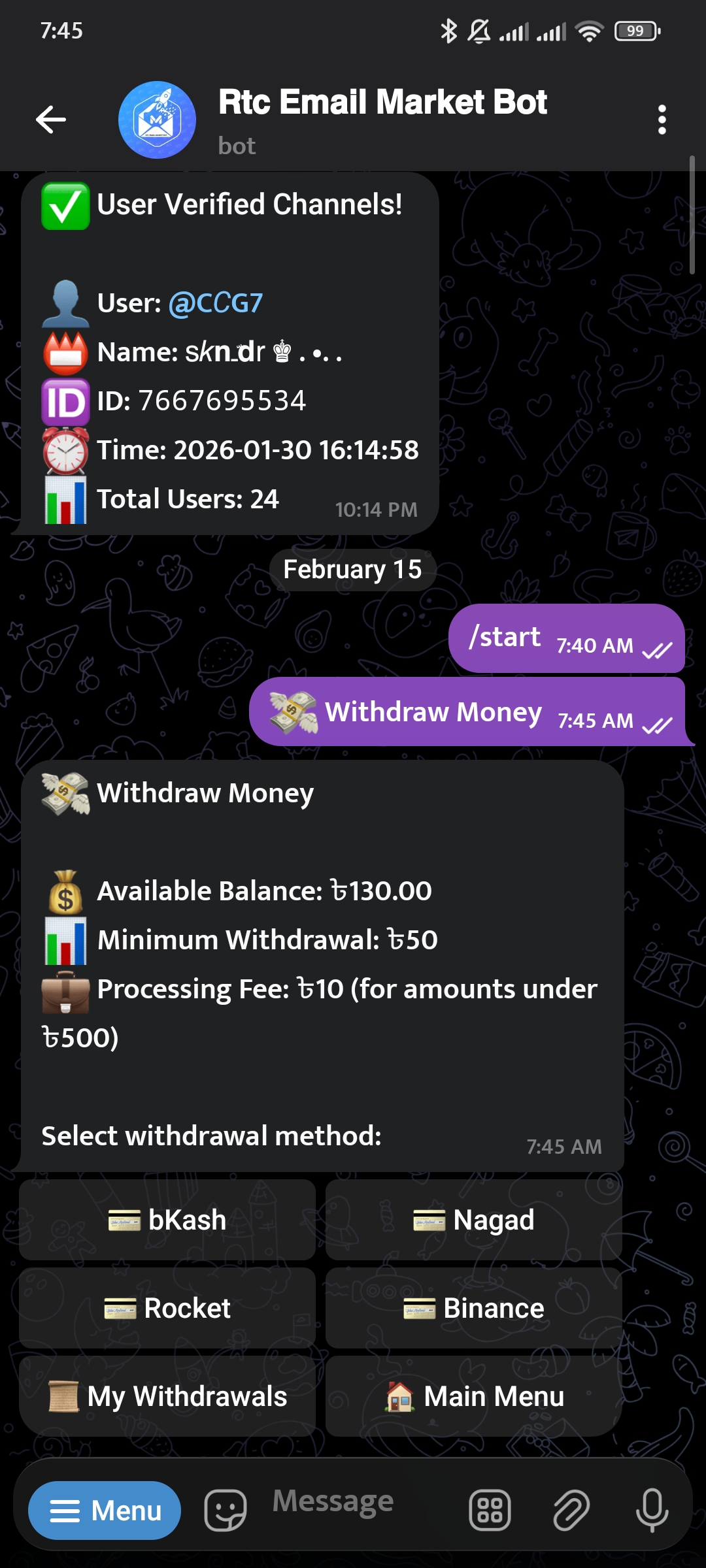 👤 Check profile & balance